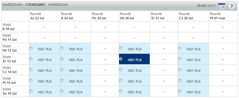 Za loty (na jednym bilecie) z Warszawy do Chongqing przyjdzie nam zapłacić jedynie 1681 PLN w dwie strony.