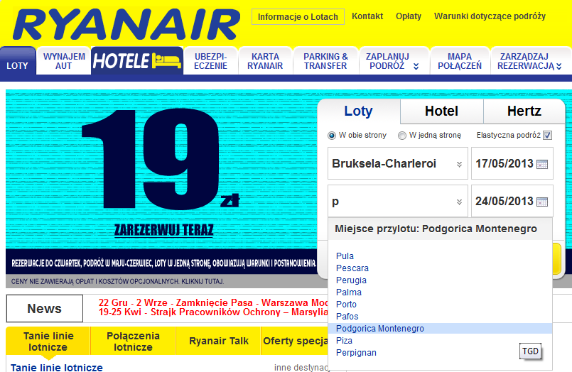 w wykazie miast na stronie Ryanaira nie ma Czarnogóry/Podgoricy ?