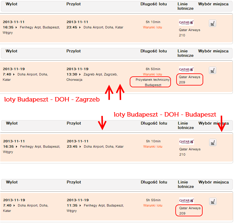 Tutaj widać, iż lot do Budapesztu jest normalnym lotem, skoro kupujący bilety tylko do BUD lecą razem z nami.