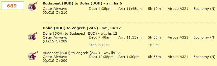 1) Budapeszt – Doha/Dauha (BUD-DOH)