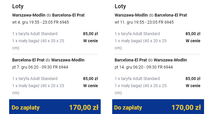 Warszawa Modlin – Barcelona (BCN) od 170 PLN* RT: