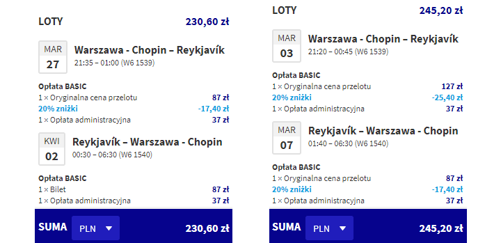 Warszawa – Reykjavik (KEF) od 181,20 PLN RT