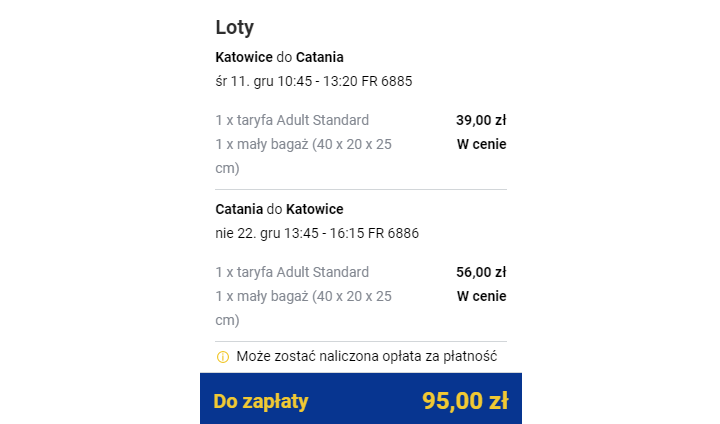 W Ryanair podana cena dotyczy podróży tylko z bagażem podręcznym zgodnie z aktualnymi zasadami przewozu. Bilety kupujemy na stronie przewoźnika: ryanair.com