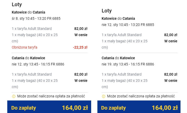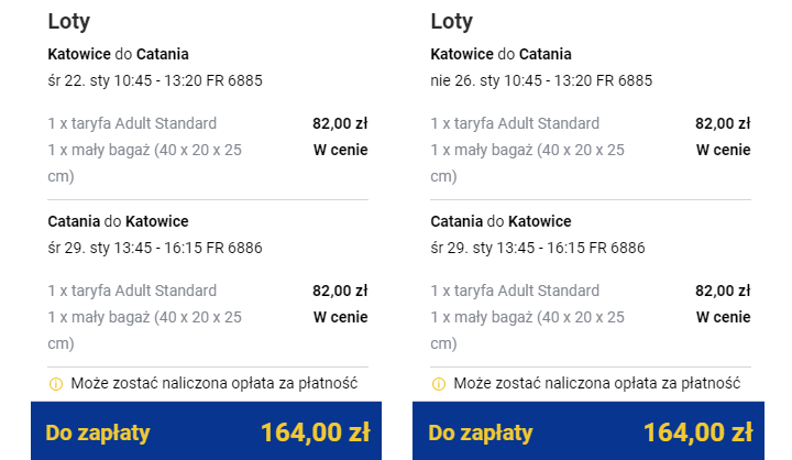 W Ryanair podana cena dotyczy podróży tylko z bagażem podręcznym zgodnie z aktualnymi zasadami przewozu. Bilety kupujemy na stronie przewoźnika: ryanair.com