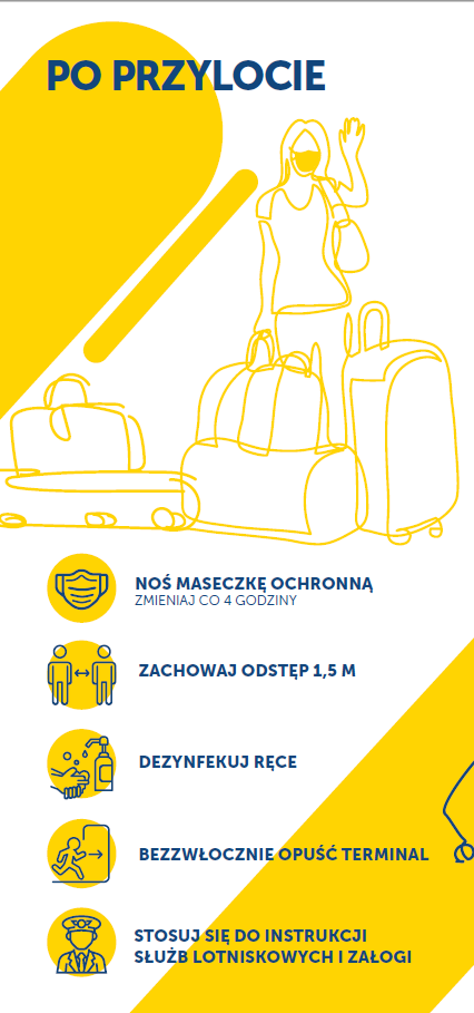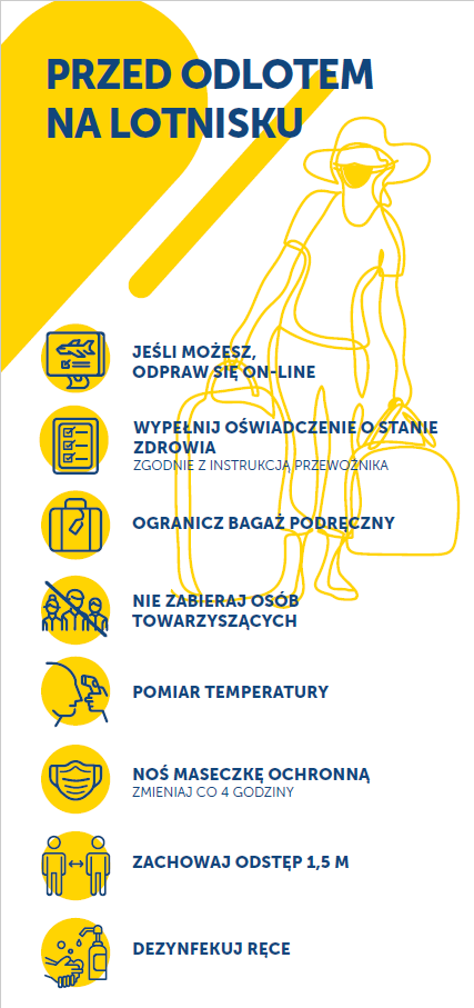 Główny Inspektorat Sanitarny we współpracy z Urzędem Lotnictwa Cywilnego opracował na podstawie wytycznych Agencji Unii Europejskiej ds. Bezpieczeństwa Lotniczego (EASA) szczegółowe wymagania dotyczące bezpieczeństwa na krajowych lotniskach i na pokładach samolotów. Ich celem jest ograniczenie ryzyka transmisji SARS-CoV-2.
