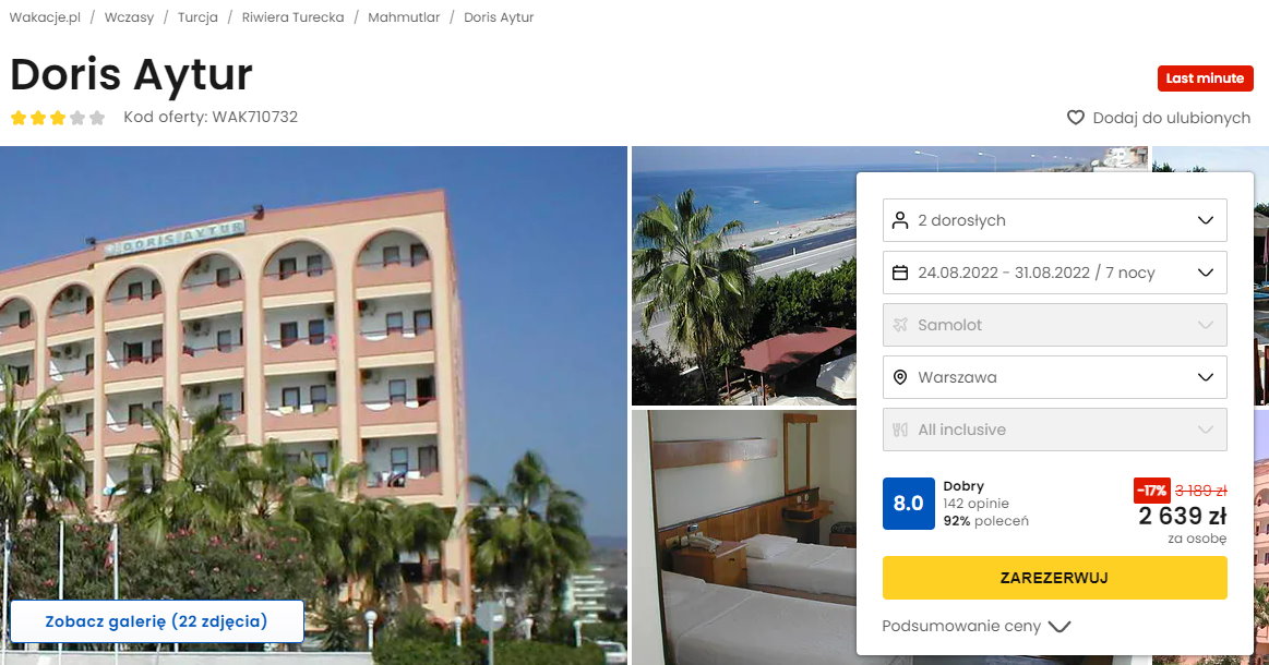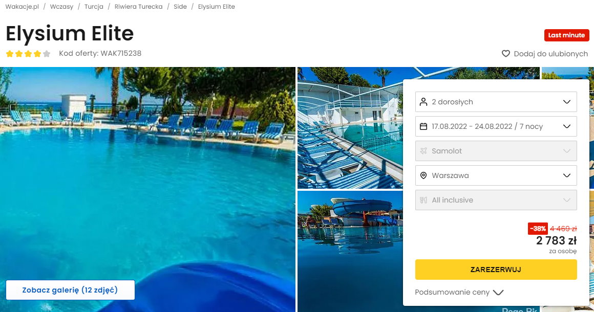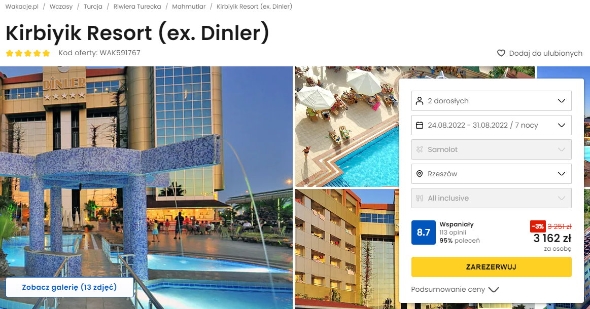 Współpracujemy z serwisem wakacje.pl i dzięki temu mogliśmy zaprezentować w/w ofertę. Treści pochodzą z serwisu wakacje.pl. Stanowią własność prawnie chronioną należącą do Wakacje.pl S.A. i/lub jej partnerów