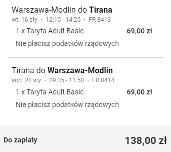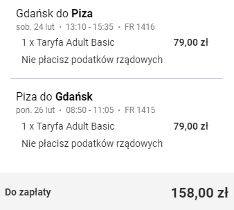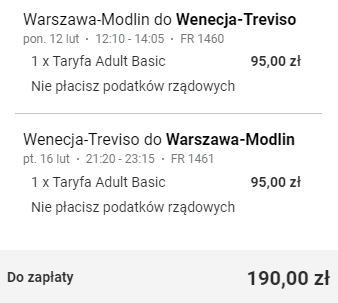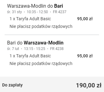 Rezerwacji trzeba dokonać na Ryanair.com, gdyż chwilowo loty Ryanair praktycznie nie są dostępne w różnych OTA.