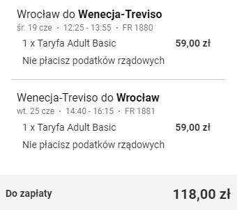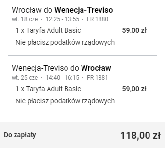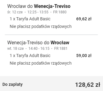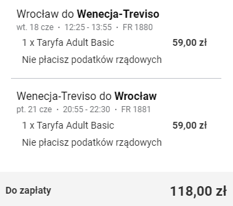 Wrocław (WRO) – Wenecja Treviso (TSF) od ~118 PLN RT