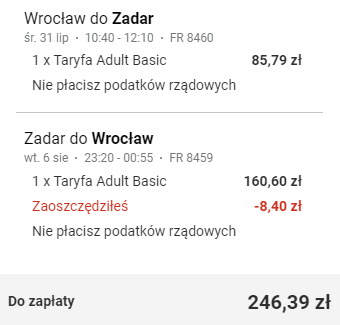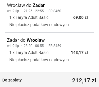 Wrocław – Zadar (ZAD) od ~194,99 PLN RT