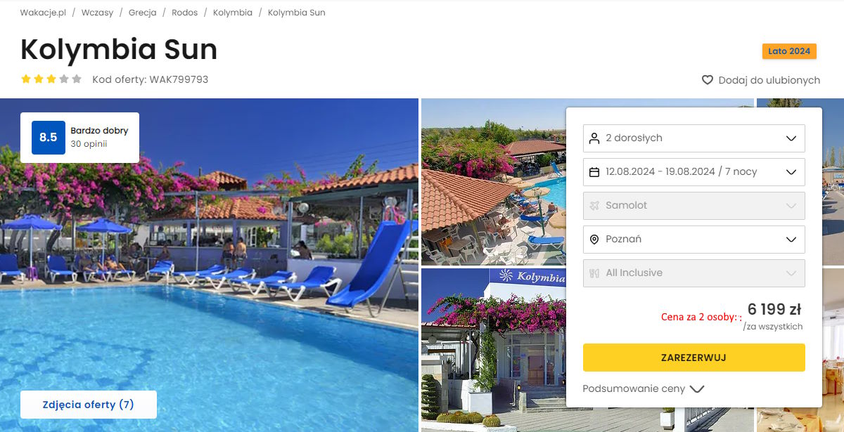 Współpracujemy z serwisem wakacje.pl i dzięki temu mogliśmy zaprezentować w/w ofertę. Treści pochodzą z serwisu wakacje.pl. Stanowią własność prawnie chronioną należącą do Wakacje.pl S.A. i/lub jej partnerów