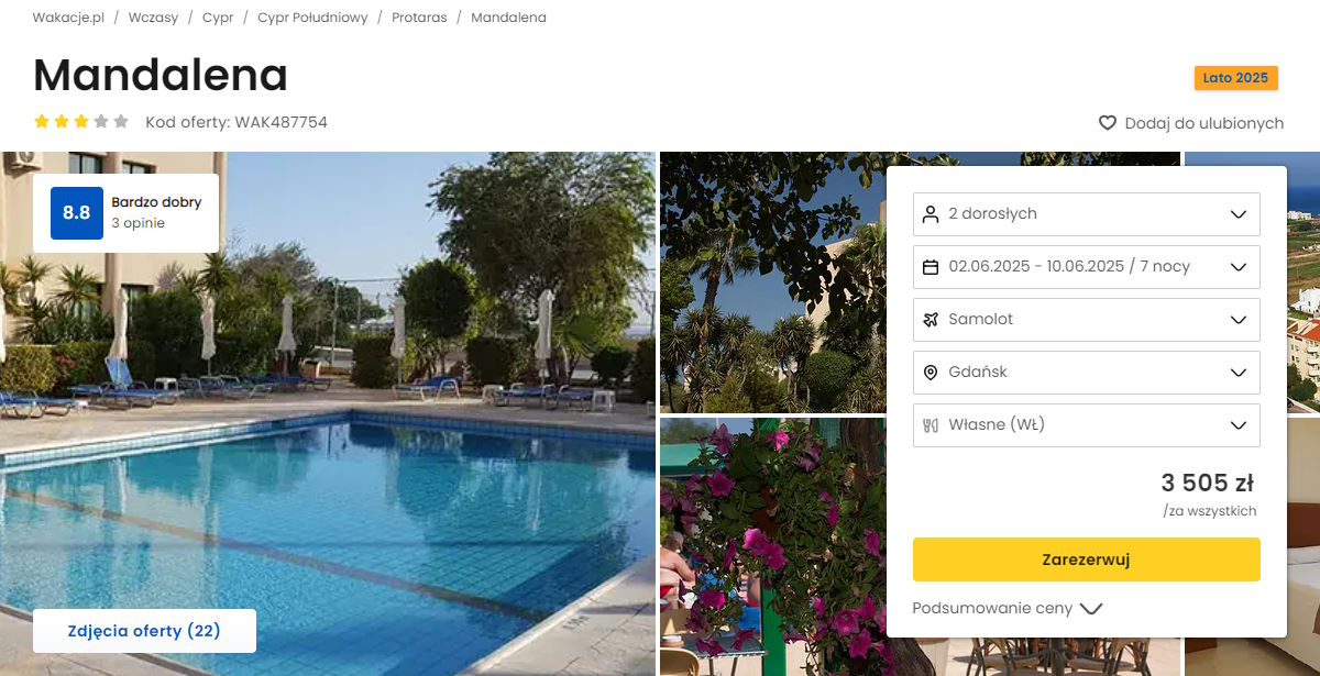 Współpracujemy z serwisem wakacje.pl i dzięki temu mogliśmy zaprezentować w/w ofertę. Treści pochodzą z serwisu wakacje.pl. Stanowią własność prawnie chronioną należącą do Wakacje.pl S.A. i/lub jej partnerów