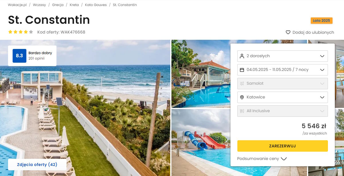 Współpracujemy z serwisem wakacje.pl i dzięki temu mogliśmy zaprezentować w/w ofertę. Treści pochodzą z serwisu wakacje.pl. Stanowią własność prawnie chronioną należącą do Wakacje.pl S.A. i/lub jej partnerów