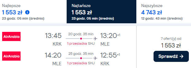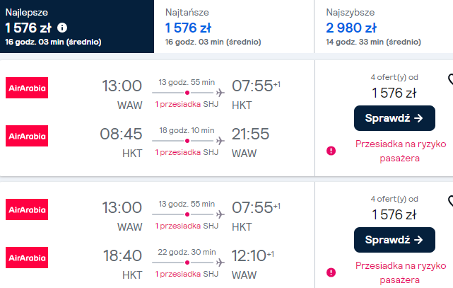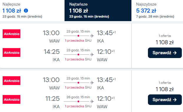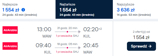 *Rezerwacji będzie można dokonać po przejściu na stronę Air Arabia. Link kieruje Was do porównywarki, która od razu sprawdzi alternatywne połączenia.