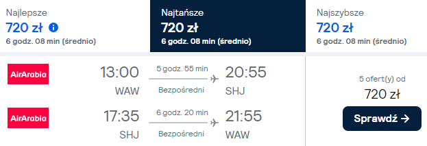 - Warszawa – Szardża od 720 PLN RT >> PRZYKŁADOWA REZERWACJA / PRZEGLĄD TANICH LOTÓW