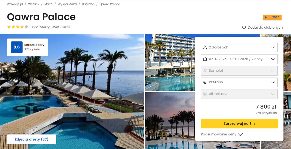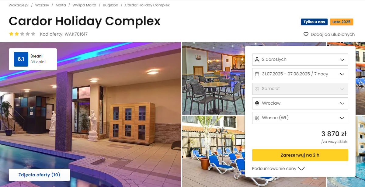 Współpracujemy z serwisem wakacje.pl i dzięki temu mogliśmy zaprezentować w/w ofertę. Treści pochodzą z serwisu wakacje.pl. Stanowią własność prawnie chronioną należącą do Wakacje.pl S.A. i/lub jej partnerów
