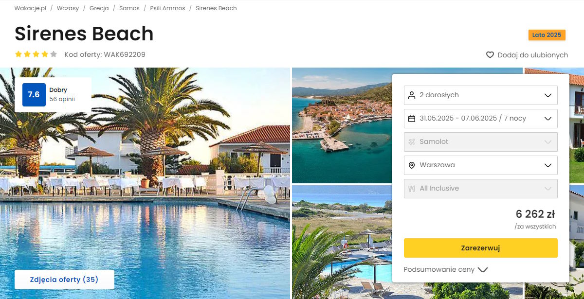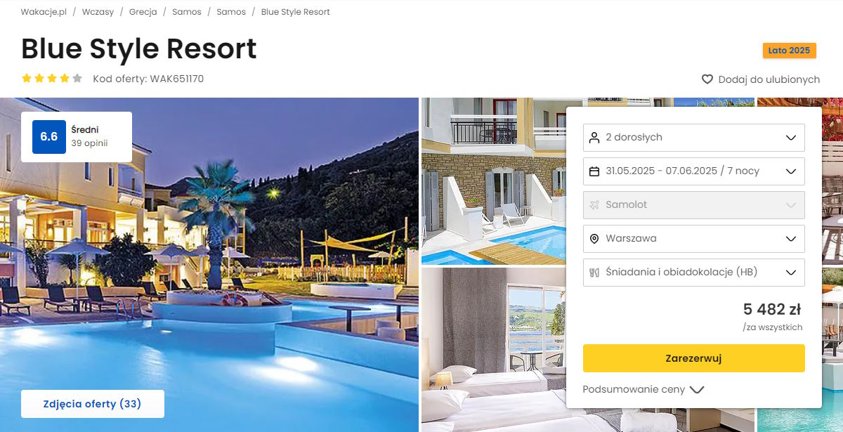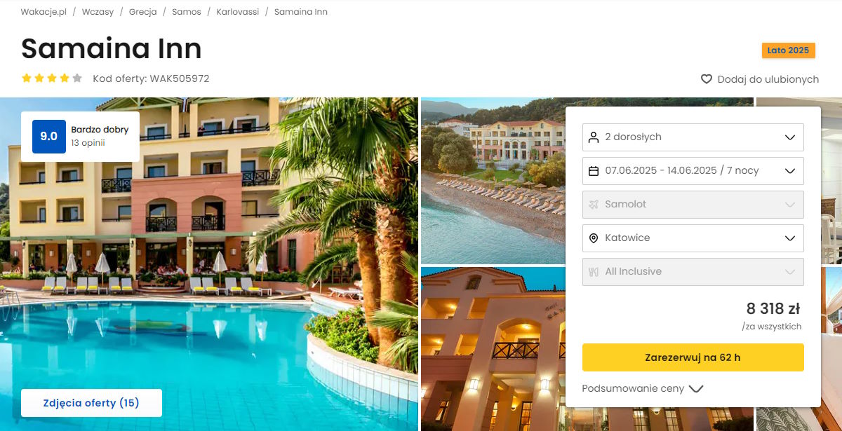 Współpracujemy z serwisem wakacje.pl i dzięki temu mogliśmy zaprezentować w/w ofertę. Treści pochodzą z serwisu wakacje.pl. Stanowią własność prawnie chronioną należącą do Wakacje.pl S.A. i/lub jej partnerów