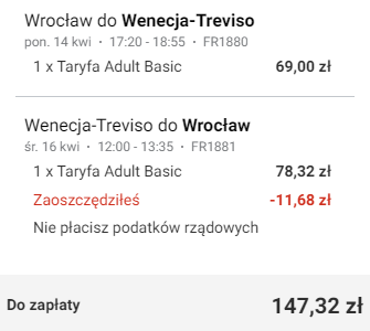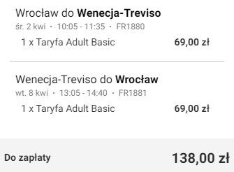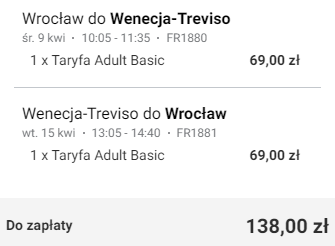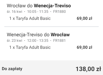 Wrocław (WRO) – Wenecja Treviso (TSF) od ~138 PLN RT