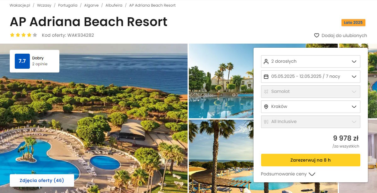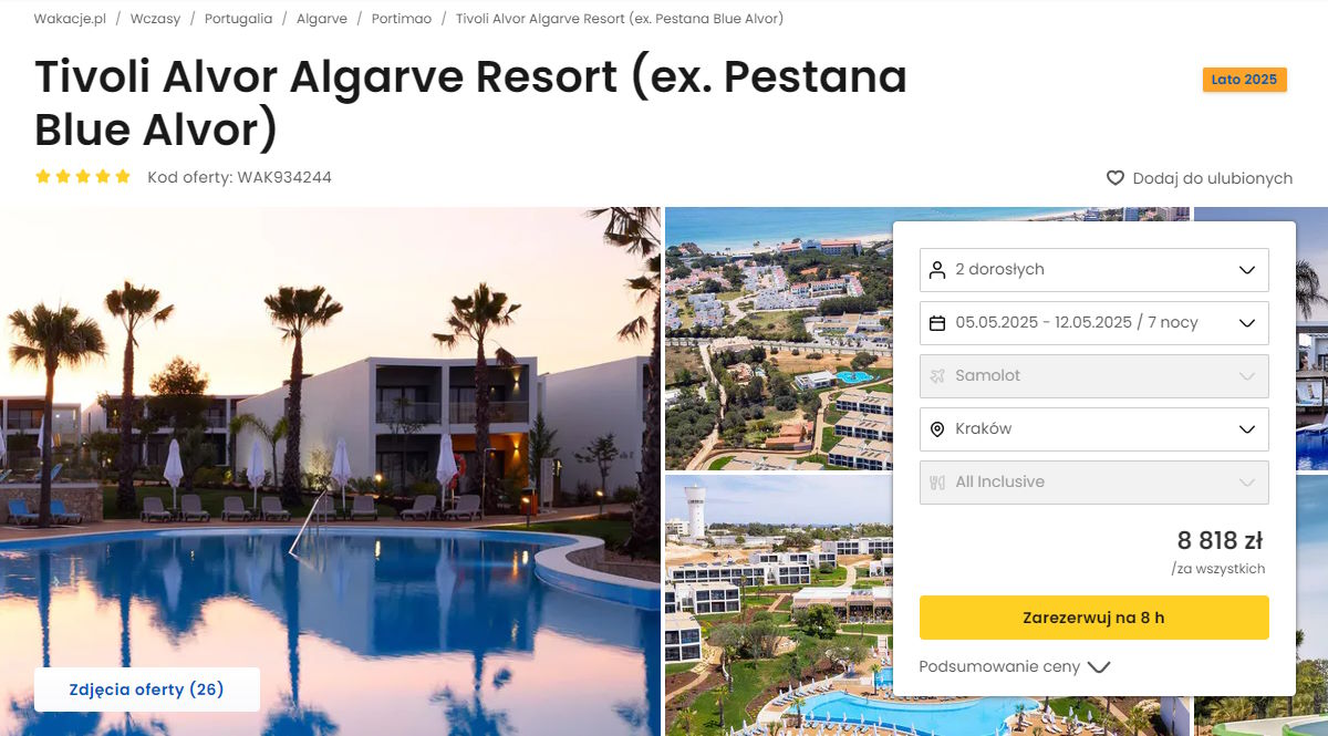 Współpracujemy z serwisem wakacje.pl i dzięki temu mogliśmy zaprezentować w/w ofertę. Treści pochodzą z serwisu wakacje.pl. Stanowią własność prawnie chronioną należącą do Wakacje.pl S.A. i/lub jej partnerów