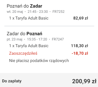 Poznań (POZ) – Zadar (ZAD) od ~138 PLN RT