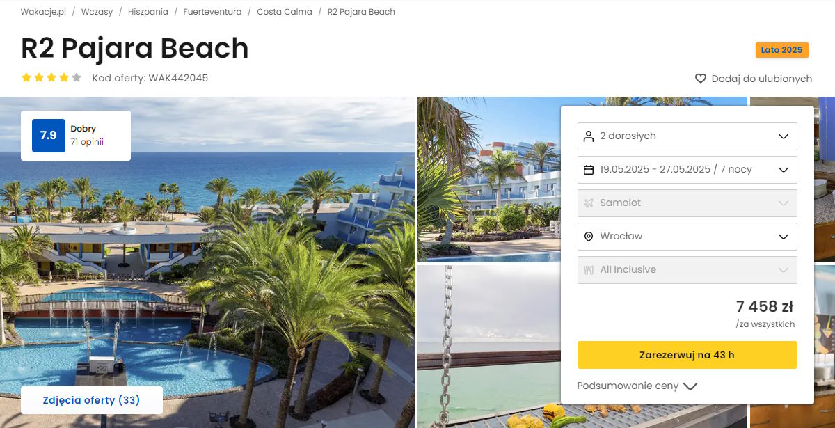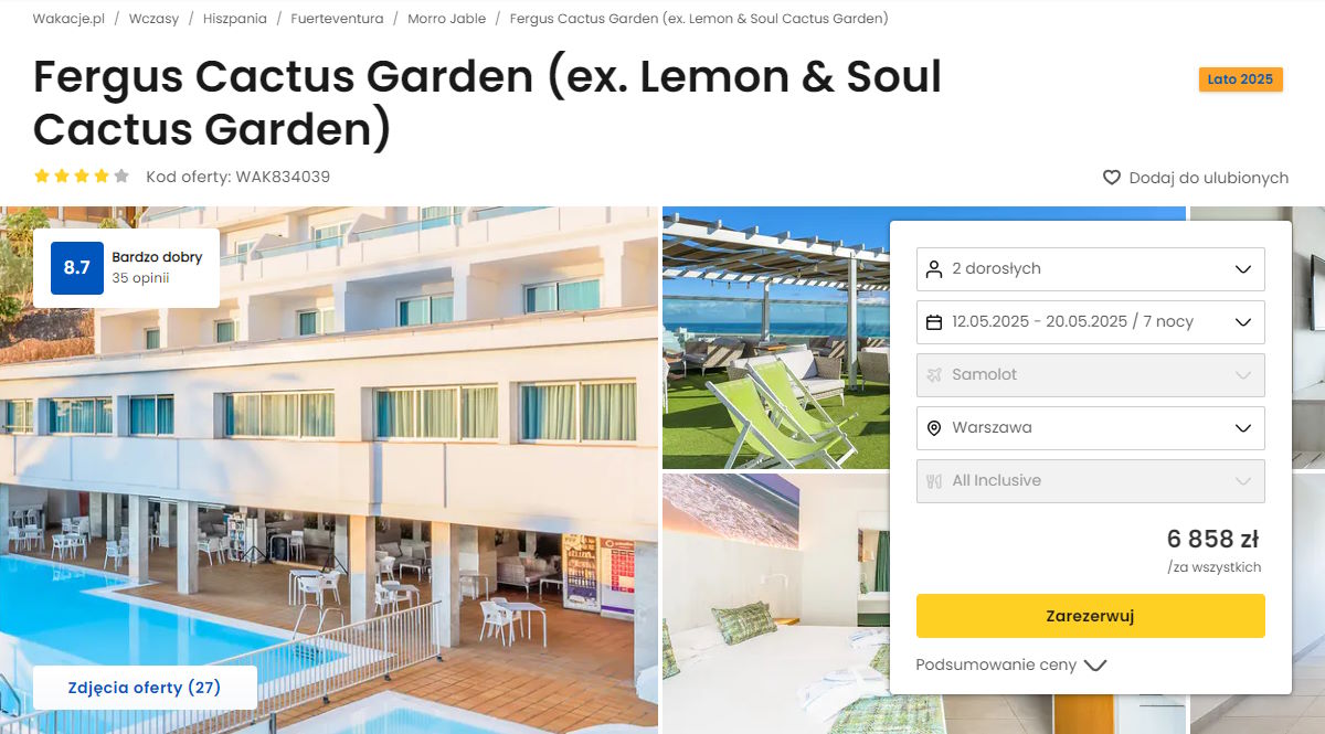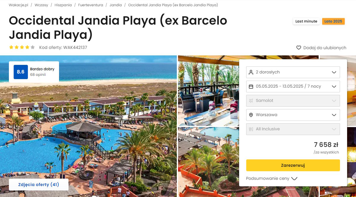 Współpracujemy z serwisem wakacje.pl i dzięki temu mogliśmy zaprezentować w/w ofertę. Treści pochodzą z serwisu wakacje.pl. Stanowią własność prawnie chronioną należącą do Wakacje.pl S.A. i/lub jej partnerów