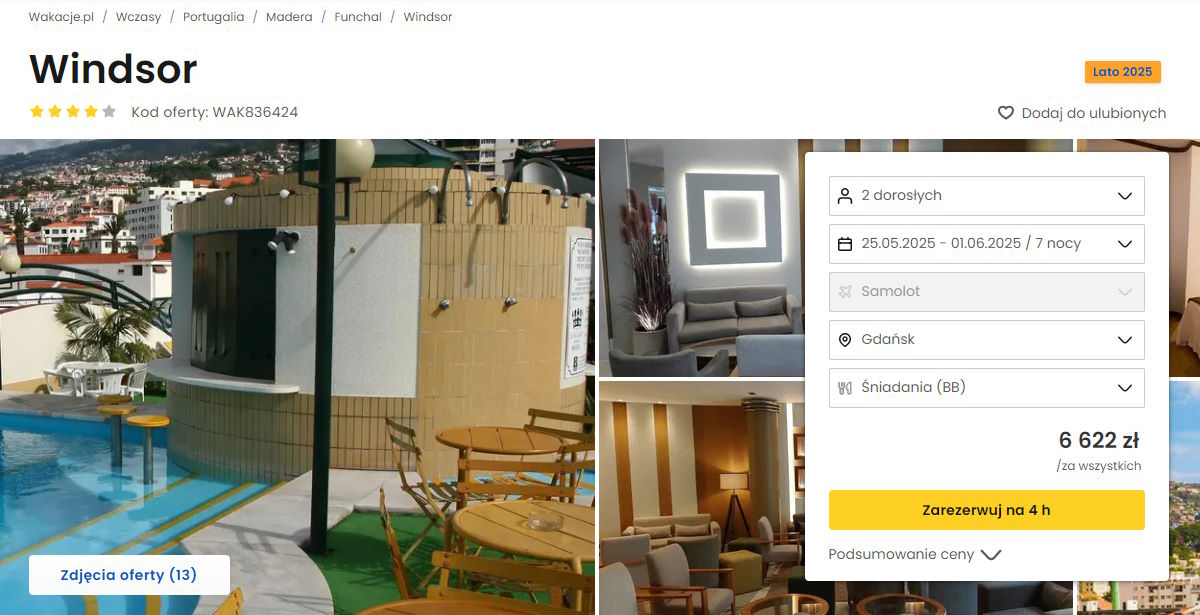 Współpracujemy z serwisem wakacje.pl i dzięki temu mogliśmy zaprezentować w/w ofertę. Treści pochodzą z serwisu wakacje.pl. Stanowią własność prawnie chronioną należącą do Wakacje.pl S.A. i/lub jej partnerów