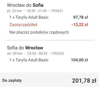 W Ryanair podana cena dotyczy podróży tylko z bagażem podręcznym zgodnie z aktualnymi zasadami przewozu. Bilety kupujemy na stronie przewoźnika: ryanair.com