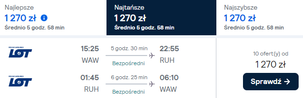 Dostępne są też loty z innych polskich lotnisk (z przesiadką w Warszawie) w niewiele wyższej (bądź nawet tej samej!) cenie – warto skorzystać!