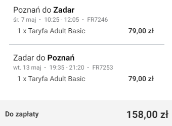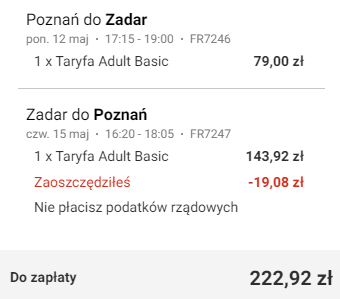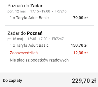 Poznań (POZ) – Zadar (ZAD) od ~158 PLN RT