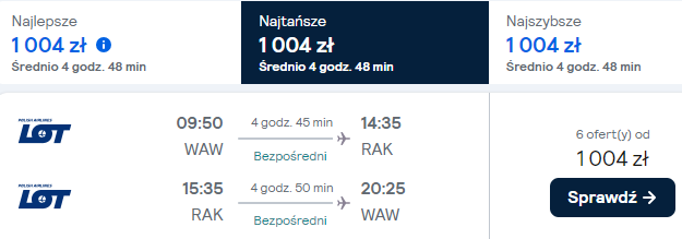 Warszawa (WAW) – Marrakesz (RAK):