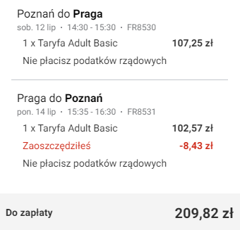 Poznań (POZ) – Praga (PRG) od ~199,50 PLN RT