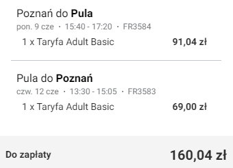 Poznań (POZ) – Pula (PUY) od ~138 PLN w dwie strony