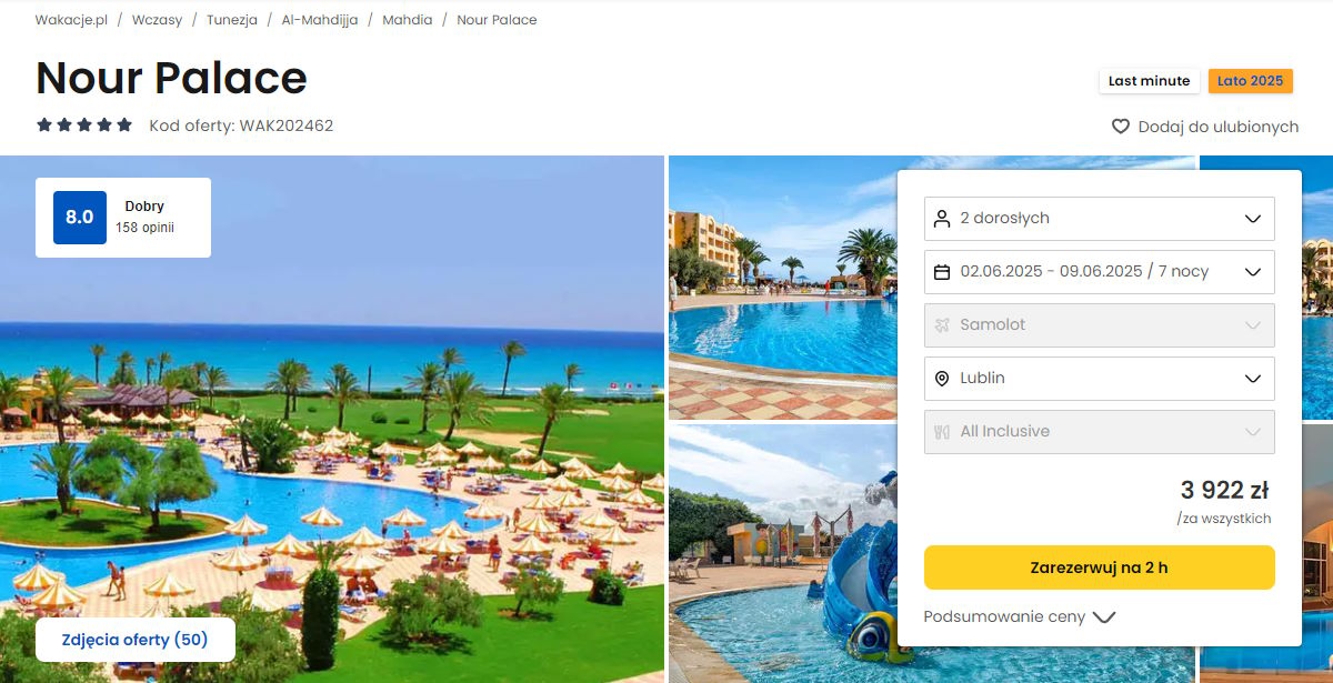 Współpracujemy z serwisem wakacje.pl i dzięki temu mogliśmy zaprezentować w/w ofertę. Treści pochodzą z serwisu wakacje.pl. Stanowią własność prawnie chronioną należącą do Wakacje.pl S.A. i/lub jej partnerów