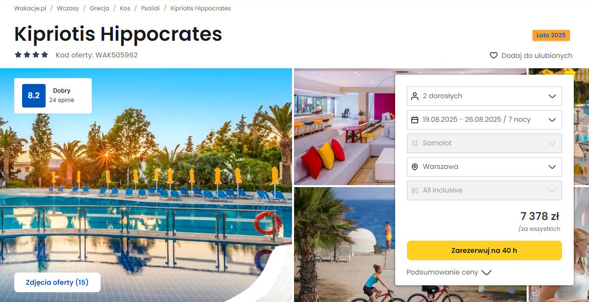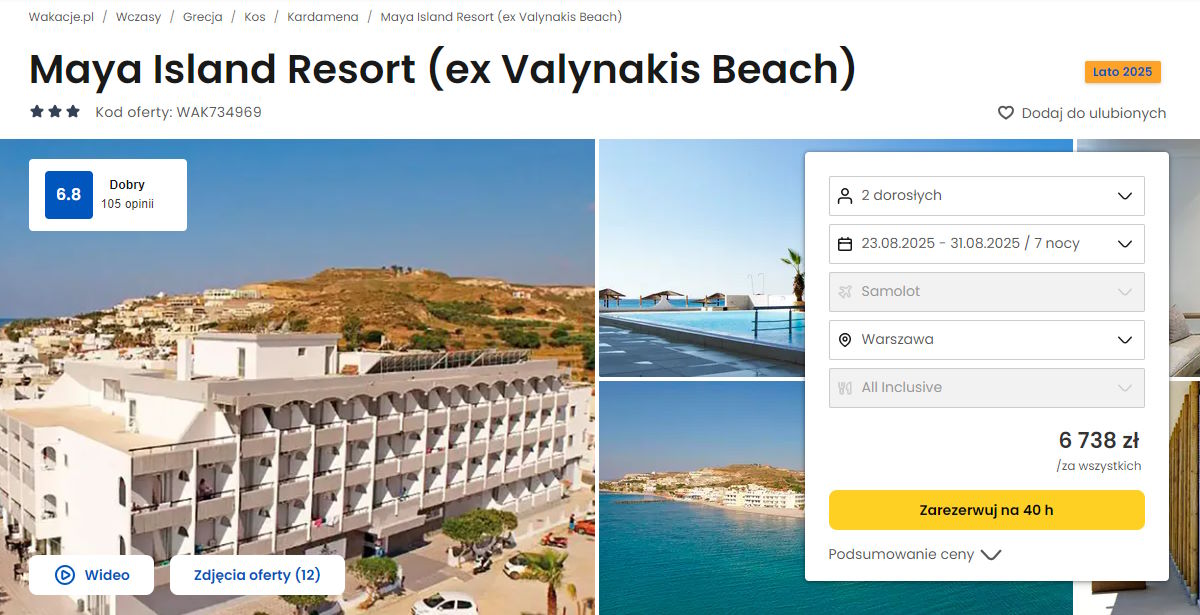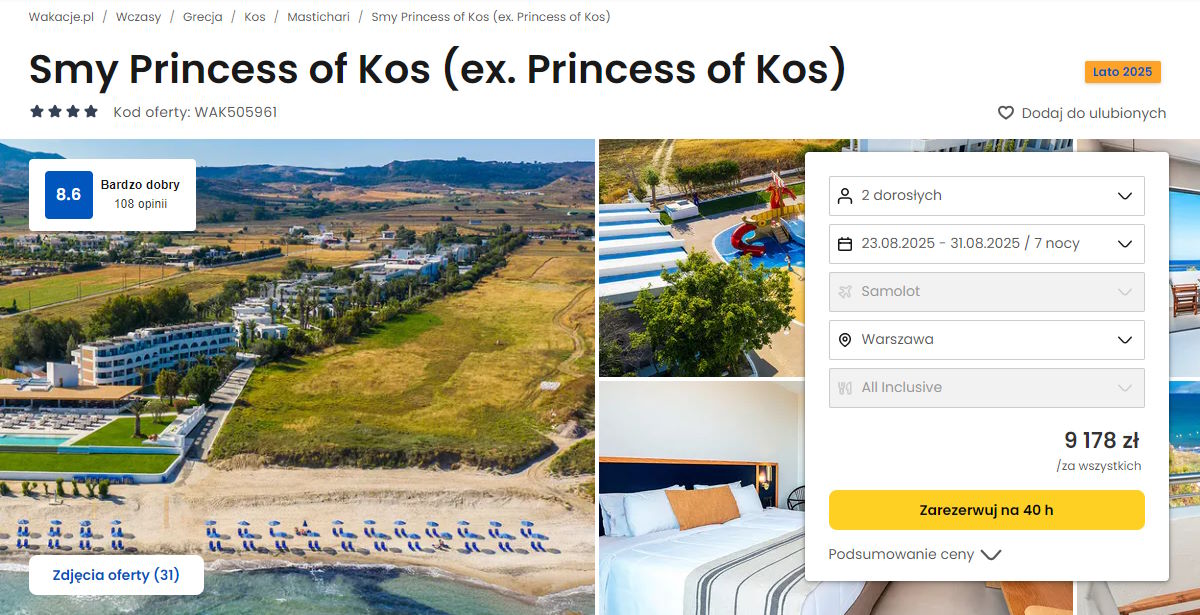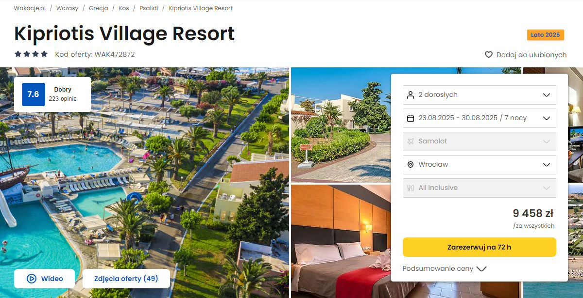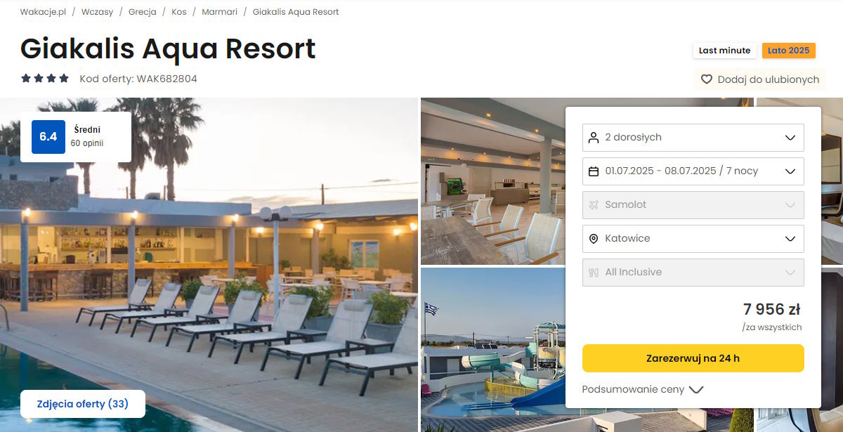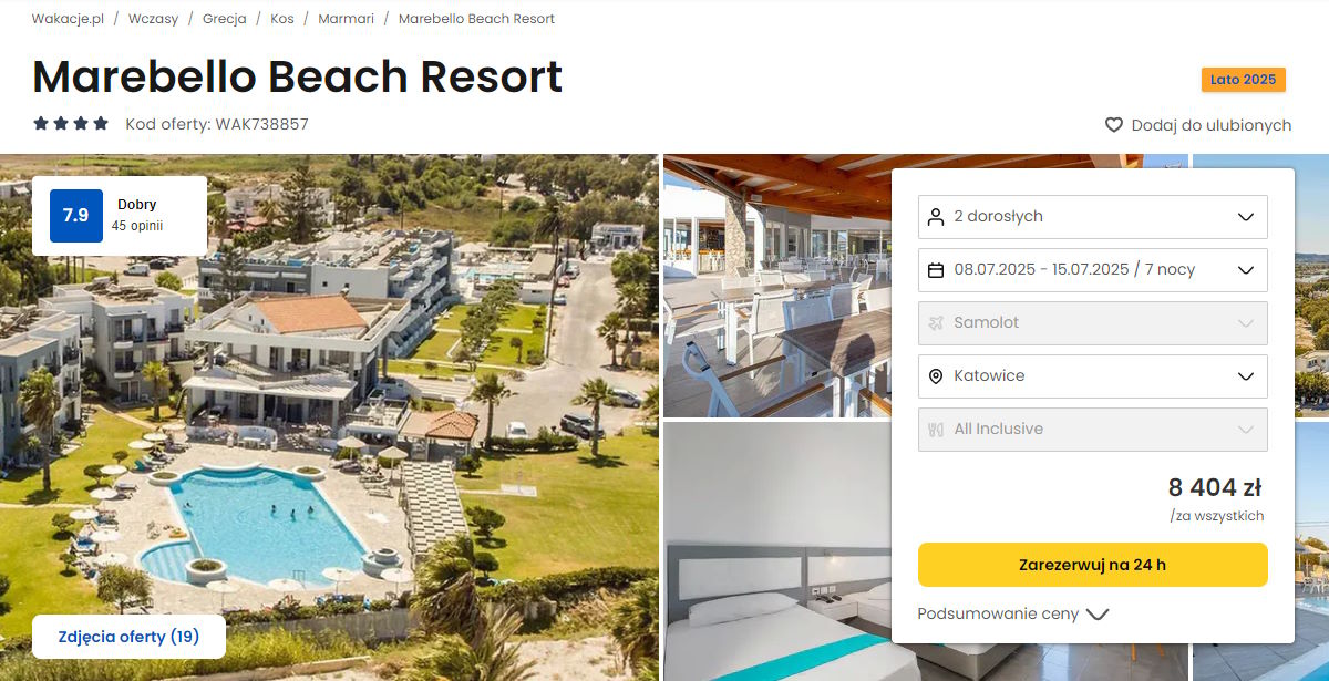 Współpracujemy z serwisem wakacje.pl i dzięki temu mogliśmy zaprezentować w/w ofertę. Treści pochodzą z serwisu wakacje.pl. Stanowią własność prawnie chronioną należącą do Wakacje.pl S.A. i/lub jej partnerów