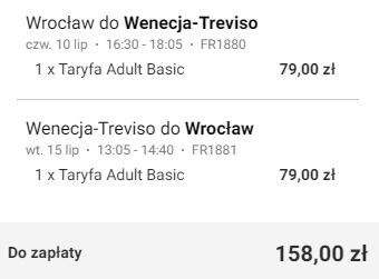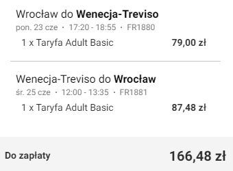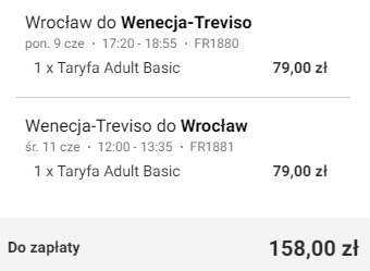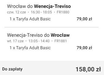 Wrocław (WRO) – Wenecja Treviso (TSF) od ~158 PLN RT