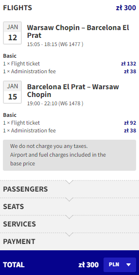 Najniższą cenę uzyskają osoby, które są członkami Wizz Discount Club. Osoby bez członkostwa zapłacą więcej. Sposób płatności (karta czy Konto Wizz) nie ma wpływu na cenę końcową. Podana cena dotyczy podróży z Bagażem Podręcznym. Bilety kupujemy na stronie wizzair.com
