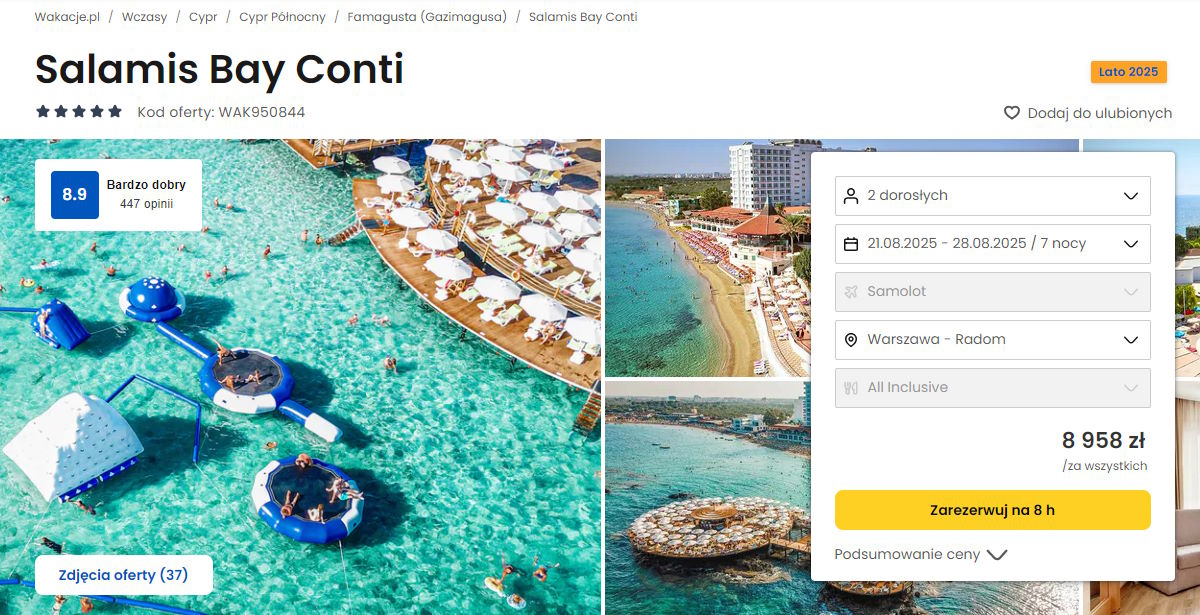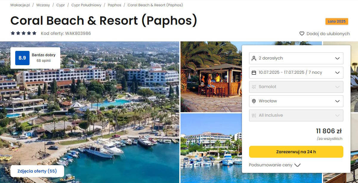Współpracujemy z serwisem wakacje.pl i dzięki temu mogliśmy zaprezentować w/w ofertę. Treści pochodzą z serwisu wakacje.pl. Stanowią własność prawnie chronioną należącą do Wakacje.pl S.A. i/lub jej partnerów