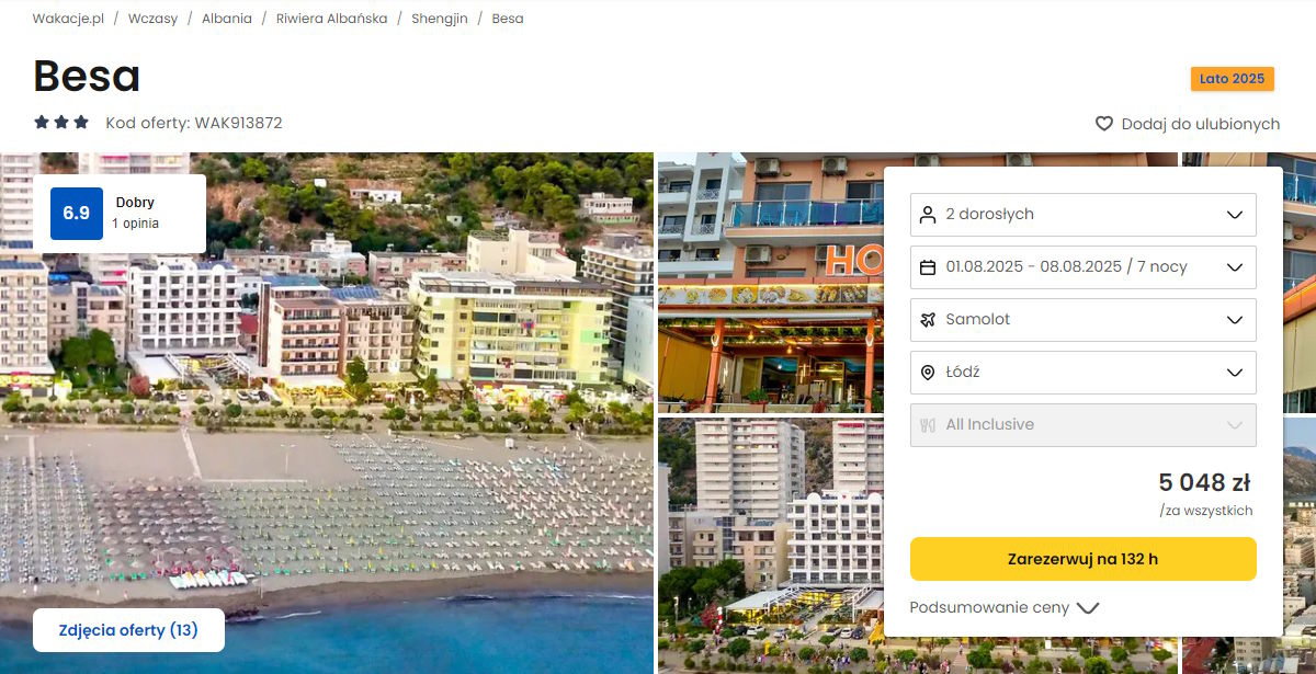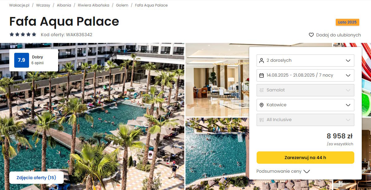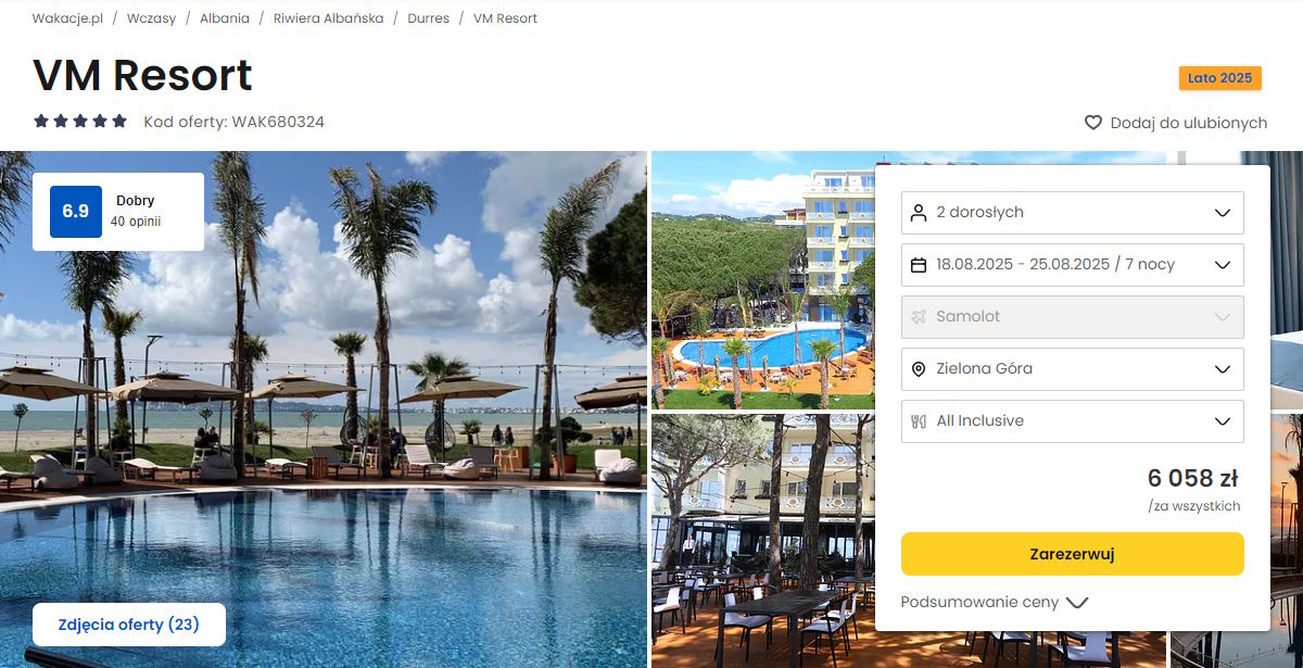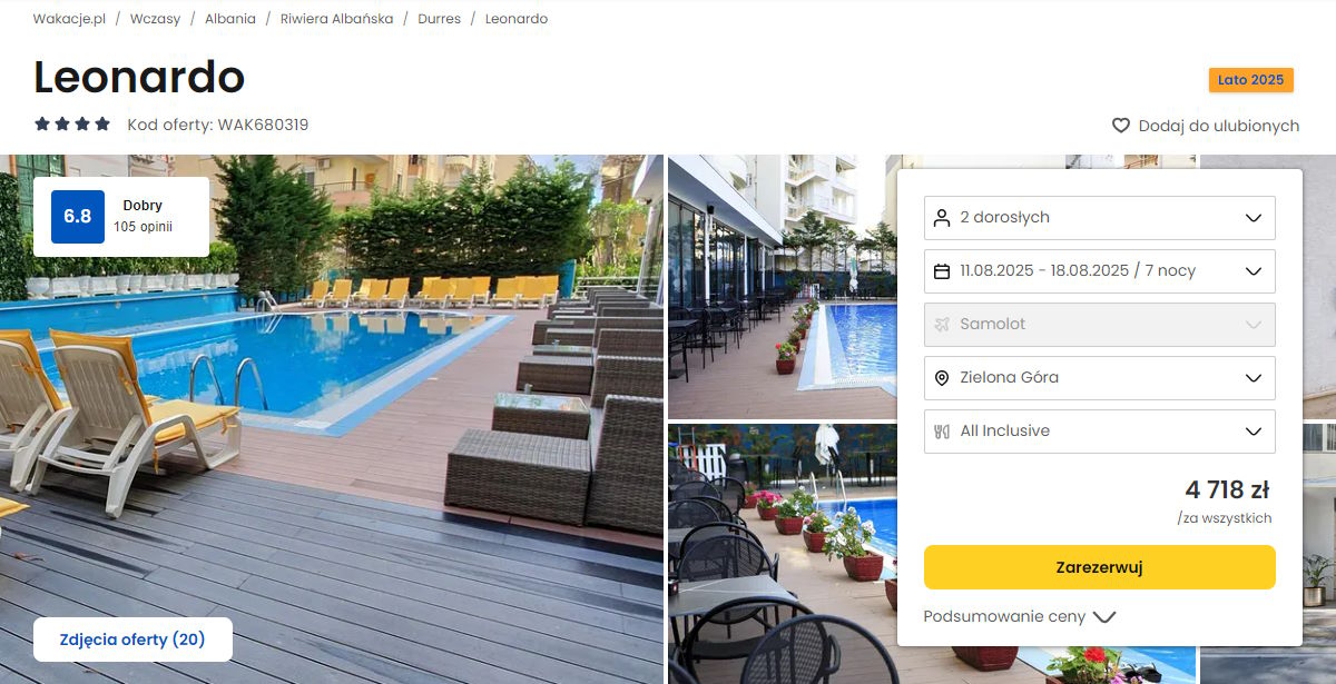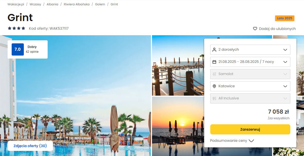 Współpracujemy z serwisem wakacje.pl i dzięki temu mogliśmy zaprezentować w/w ofertę. Treści pochodzą z serwisu wakacje.pl. Stanowią własność prawnie chronioną należącą do Wakacje.pl S.A. i/lub jej partnerów