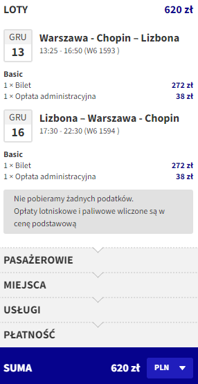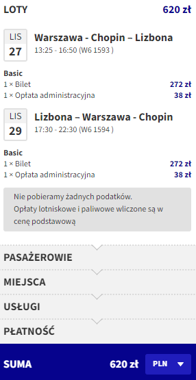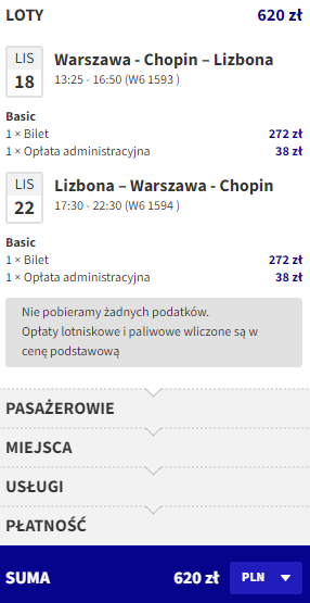 Warszawa – Lizbona od ~620 PLN RT