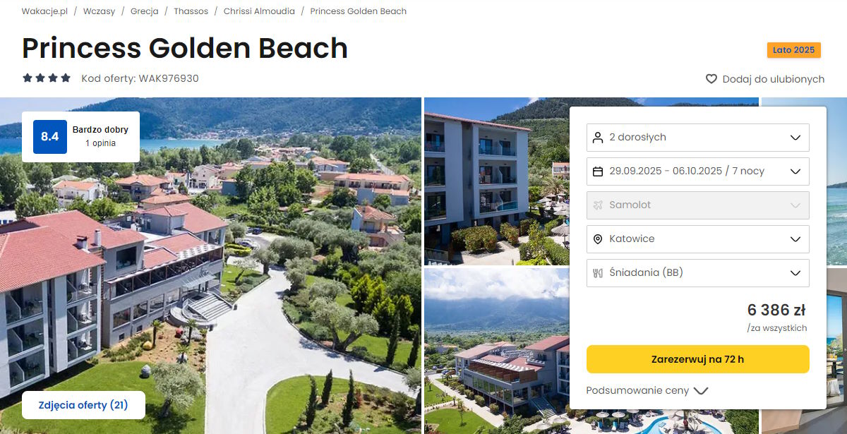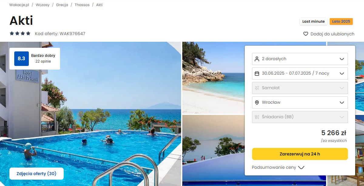 Współpracujemy z serwisem wakacje.pl i dzięki temu mogliśmy zaprezentować w/w ofertę. Treści pochodzą z serwisu wakacje.pl. Stanowią własność prawnie chronioną należącą do Wakacje.pl S.A. i/lub jej partnerów