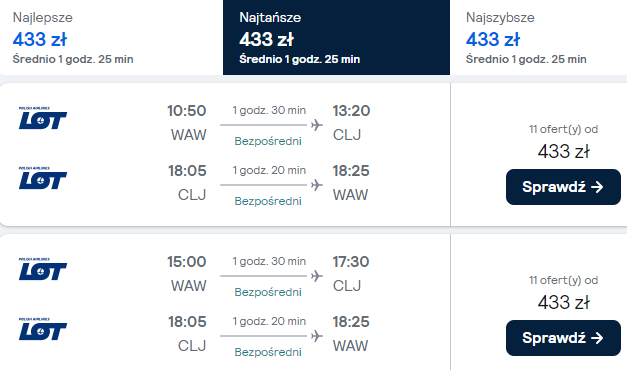 Dostępne są też loty z innych polskich lotnisk (z przesiadką w Warszawie) w niewiele wyższej (bądź nawet tej samej!) cenie – warto skorzystać!