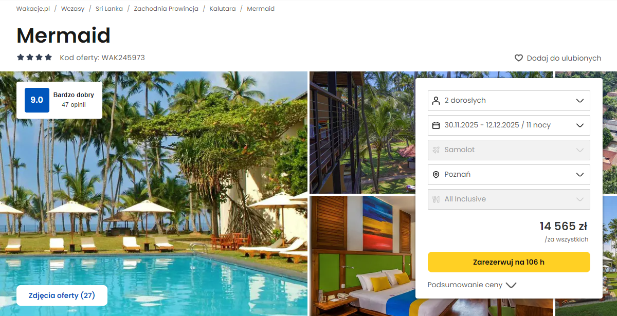 Współpracujemy z serwisem wakacje.pl i dzięki temu mogliśmy zaprezentować w/w ofertę. Treści pochodzą z serwisu wakacje.pl. Stanowią własność prawnie chronioną należącą do Wakacje.pl S.A. i/lub jej partnerów