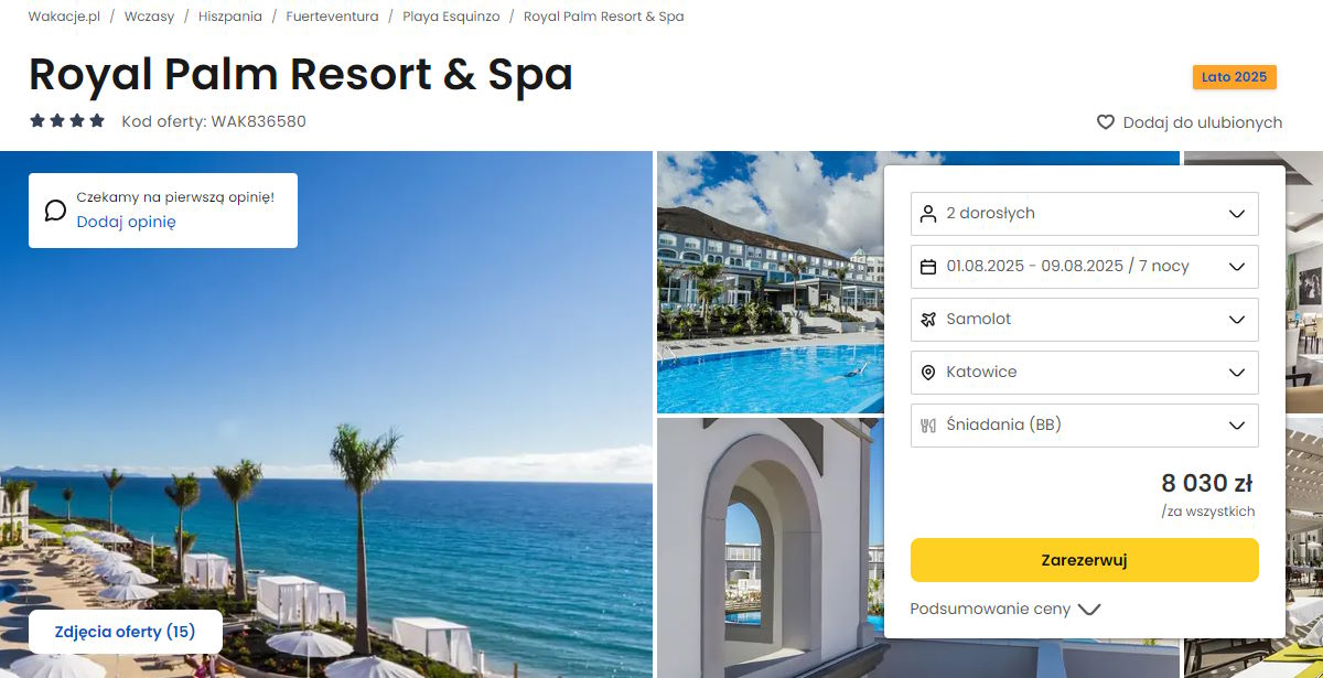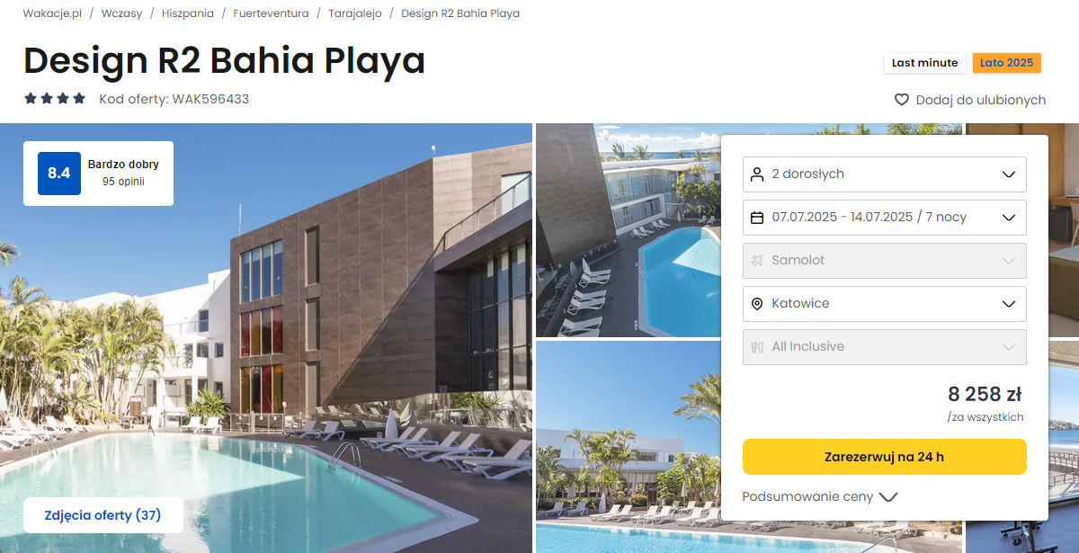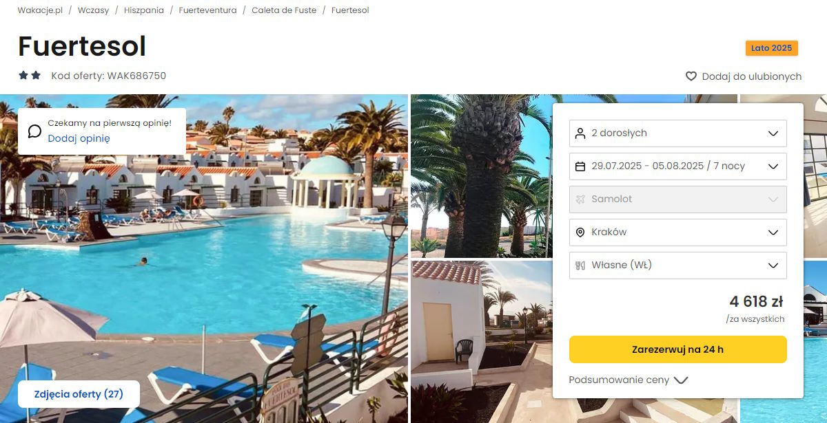 Współpracujemy z serwisem wakacje.pl i dzięki temu mogliśmy zaprezentować w/w ofertę. Treści pochodzą z serwisu wakacje.pl. Stanowią własność prawnie chronioną należącą do Wakacje.pl S.A. i/lub jej partnerów