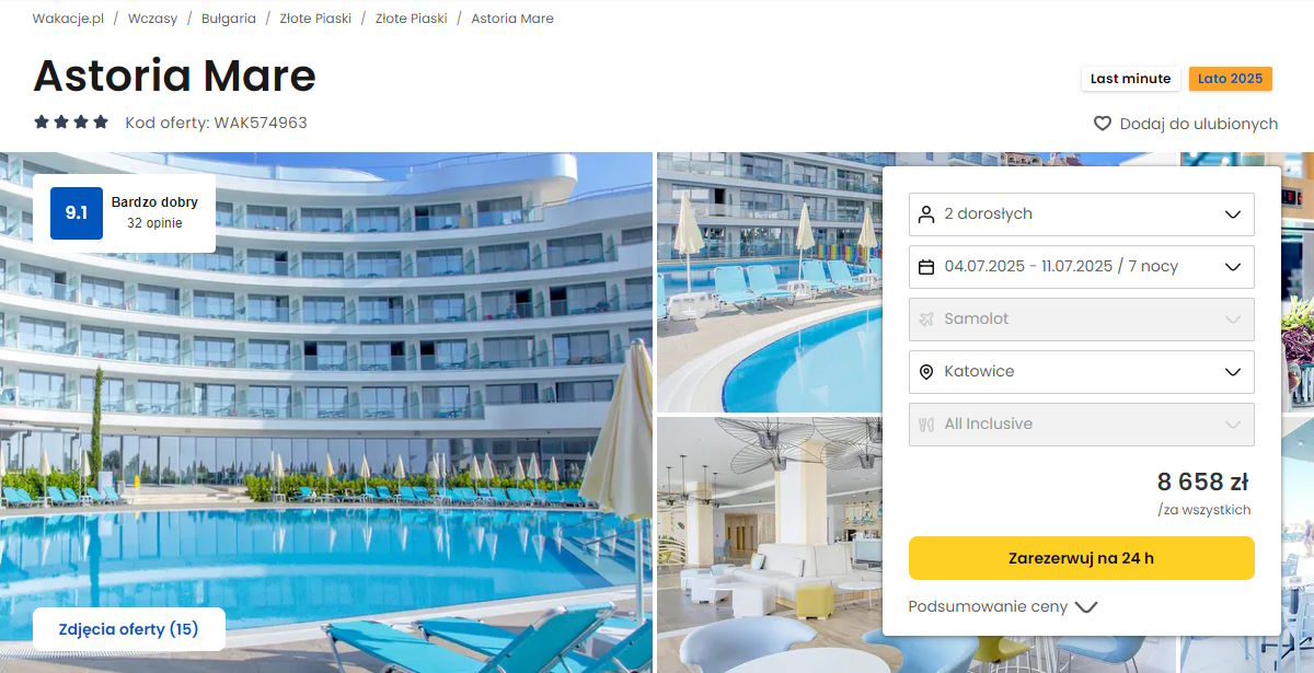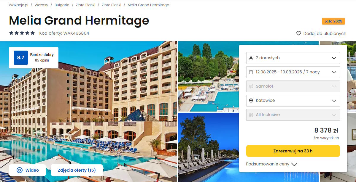 Współpracujemy z serwisem wakacje.pl i dzięki temu mogliśmy zaprezentować w/w ofertę. Treści pochodzą z serwisu wakacje.pl. Stanowią własność prawnie chronioną należącą do Wakacje.pl S.A. i/lub jej partnerów