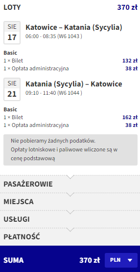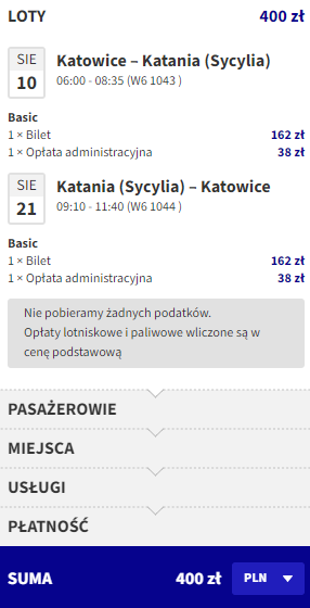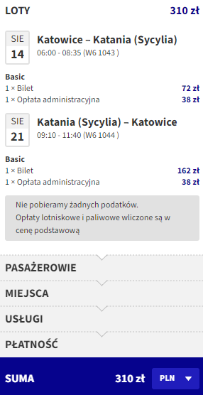 Katowice (KTW) – Katania (CTA) od ~310 PLN RT
