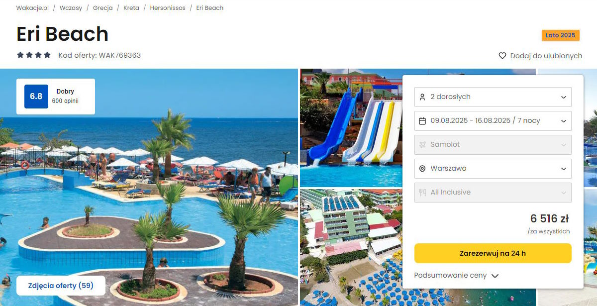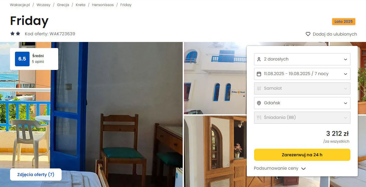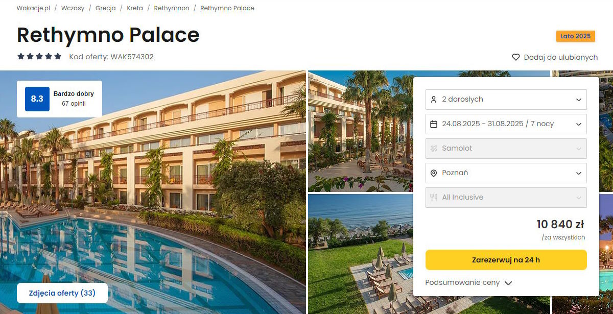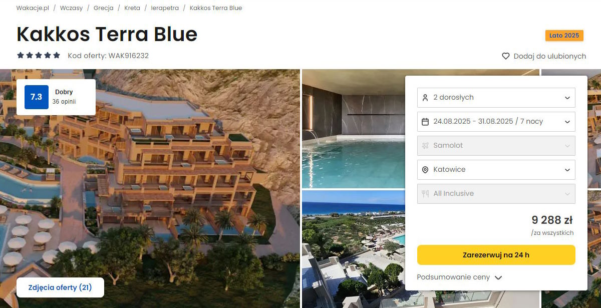 Współpracujemy z serwisem wakacje.pl i dzięki temu mogliśmy zaprezentować w/w ofertę. Treści pochodzą z serwisu wakacje.pl. Stanowią własność prawnie chronioną należącą do Wakacje.pl S.A. i/lub jej partnerów