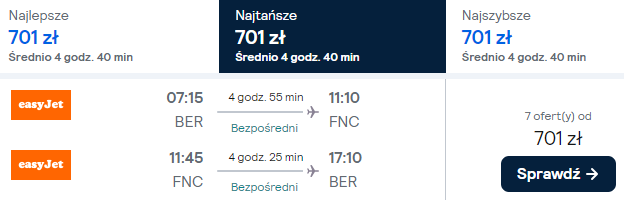 Loty do Funchal odbywamy z Berlina na pokładzie easyJet – bezpośrednio. Poniższej znajdziecie przykładowe terminy i ceny.