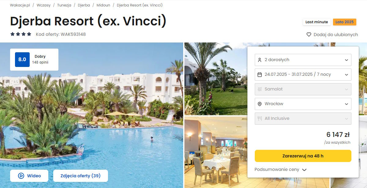 Współpracujemy z serwisem wakacje.pl i dzięki temu mogliśmy zaprezentować w/w ofertę. Treści pochodzą z serwisu wakacje.pl. Stanowią własność prawnie chronioną należącą do Wakacje.pl S.A. i/lub jej partnerów