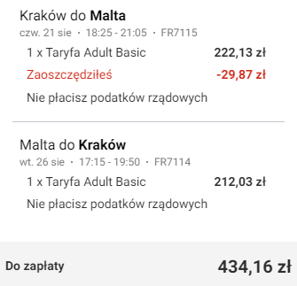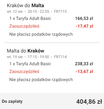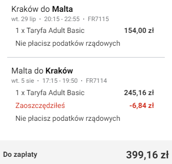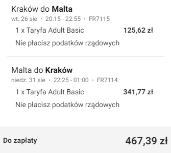 Kraków (KRK) – Malta (MLA) od ~362 PLN w dwie strony