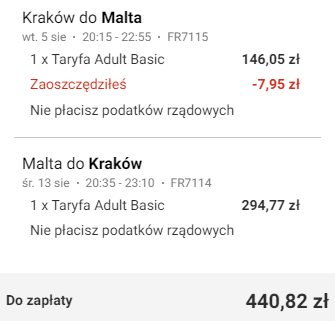 W Ryanair podana cena dotyczy podróży tylko z bagażem podręcznym zgodnie z aktualnymi zasadami. Bilety kupujemy na stronie przewoźnika: ryanair.com