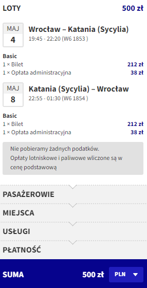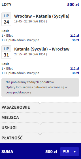 Wrocław (WRO) – Katania (CTA) od ~500 PLN RT